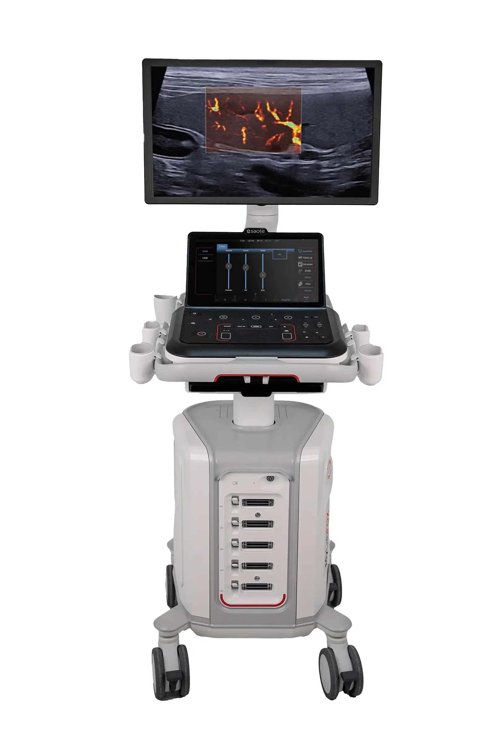 Esaote ultrasound systems are known for their high image quality, reliability and user-friendly operation. The company focuses on developing advanced ultrasound technologies for applications such as musculoskeletal, cardiovascular and veterinary diagnostics. Innovative imaging solutions, specialized transducers and ergonomic system design make Esaote devices well suited for both clinical practice and mobile use.